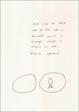 I am sitting in front of a poster which was a drawing made by one of the artists that is working on the project, Dave Sherry. I thought it exemplified what kinds of spaces we are looking at – it is how these two kinds of spaces (public space and artistic personal space) may, or may not, move together.