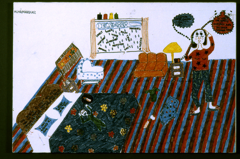 Each week there was a different theme, starting with them and their bodies. The next week was about relationships with the baby’s father, all of the issues within that relationship and their feelings about it. Throughout this process they developed a series of drawings about the chaos in their lives, their desire to eat food and so on. These drawings are pretty incredible.
